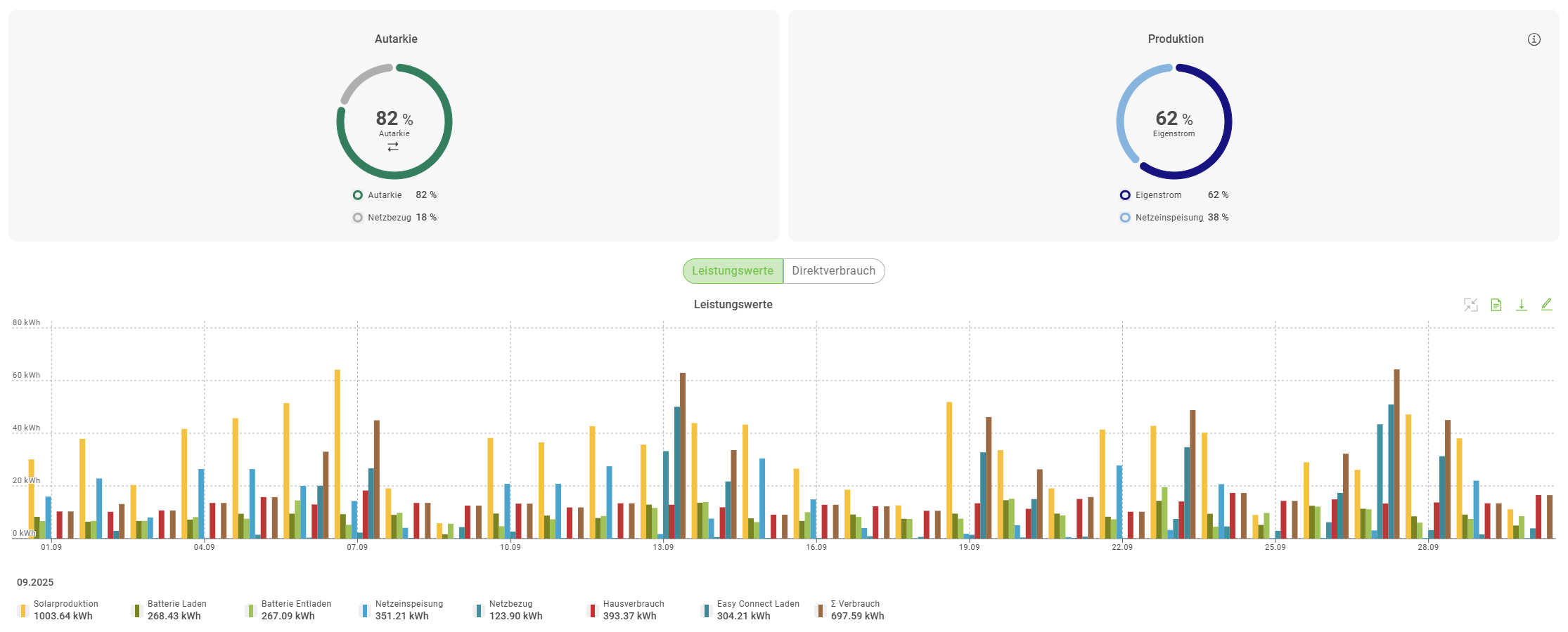 Photovoltaik Daten 09.2025