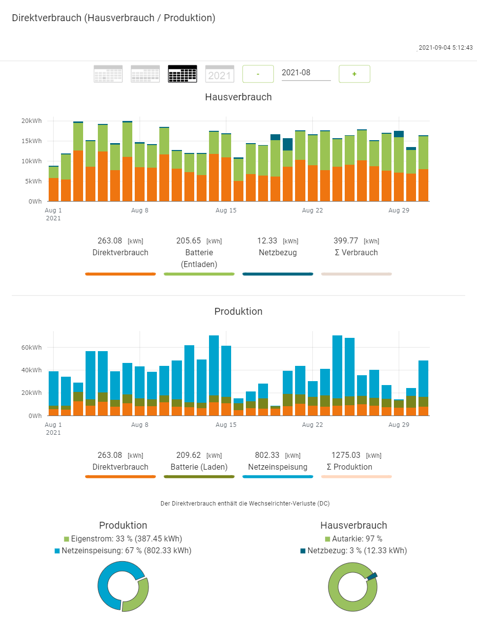 Photovoltaik Daten 08.2021